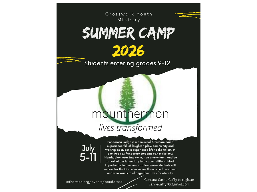 Join us for an exciting week of Youth Summer Christian Camp July 5th-11th! Students entering 9-12 grades are welcome for a week of laughter, play, community & worship in the Santa Cruz Mountains. To register contact Carrie Cuffy @ carriecuffy76@gmail.com